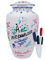 The Customizable White urn is a personalized aluminum urn with a capacity of 4L.