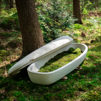 The Loop Living Cocoon™ is the world’s first coffin made from mushrooms. Grown in just 7 days from local mushrooms and upcycled hemp fibres, it fully returns to the earth within 45 days, enriching nature in the most natural way. Lined with a soft bed of moss (with other natural linings available) and offered in a ‘Calm’ or ‘Wild’ colour. Certified for natural burial, traditional burial and cremation. A heartfelt choice for those who wish to give back to nature and leave the world better for the generations to come.