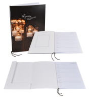 Registre souple cartonné avec décor, comprenant un emplacement pour insérer une photo 10x15 , un cahier de 5 feuillets à signatures recto agrafé (50 signatures), un cordon et un 3ème volet avec rabat (pochette/porte-doc).